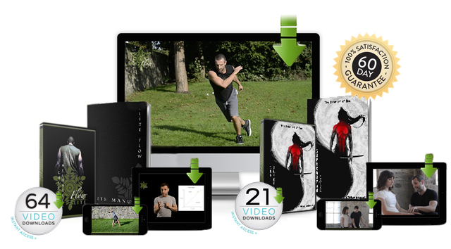 64 videos; 5 elite flow-triggering workouts. I will walk you through these 5 powerful flow-triggering routines. 5-6 functional movements per routine. They will simultaneously blend the 7 weapons from The Superhuman Code and breathing exercises for every flow workout.